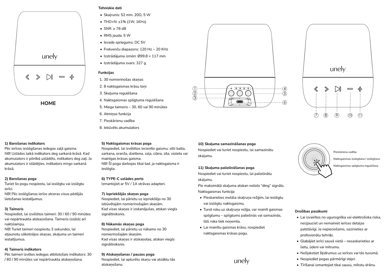 Unely HOME ir ideāla izvēle ģimenēm, kuras vēlas izmantot trokšņu aparātu katru nakti, novērtē augstas kvalitātes skaņu un maigu naktsapgaismojumu.